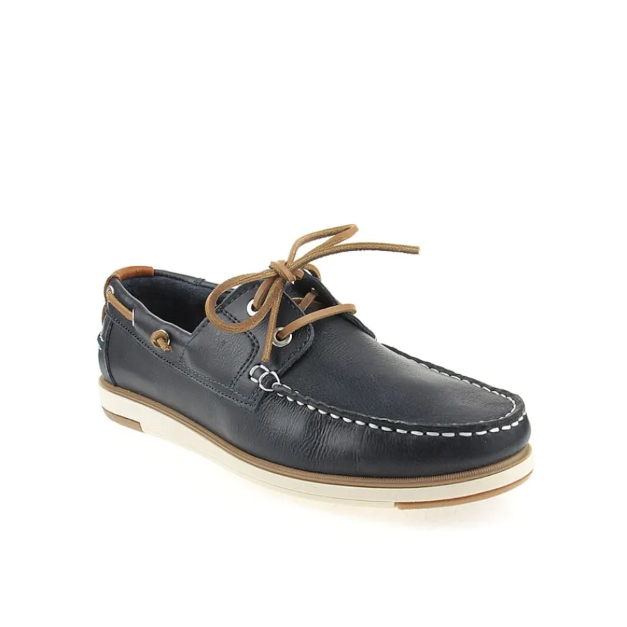 Sapato de vela para homem em pele. Disponível nas cores azul e camel.