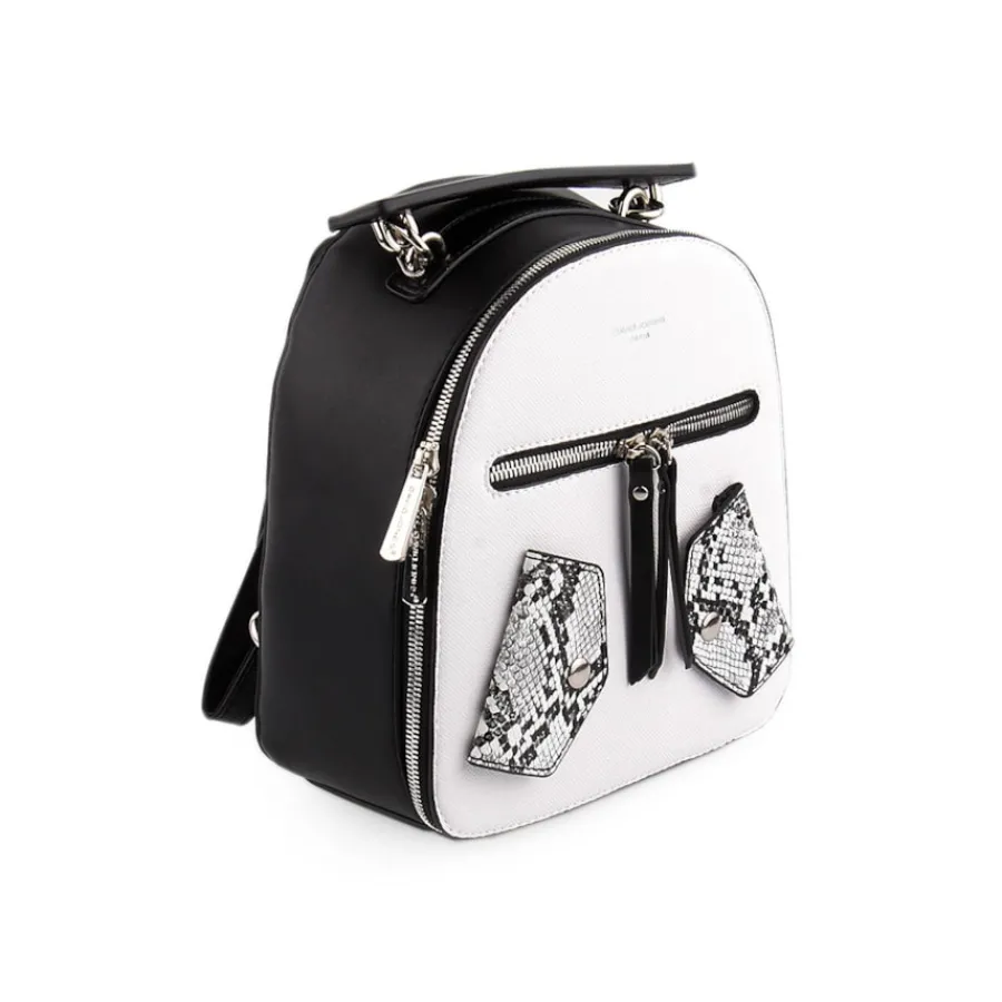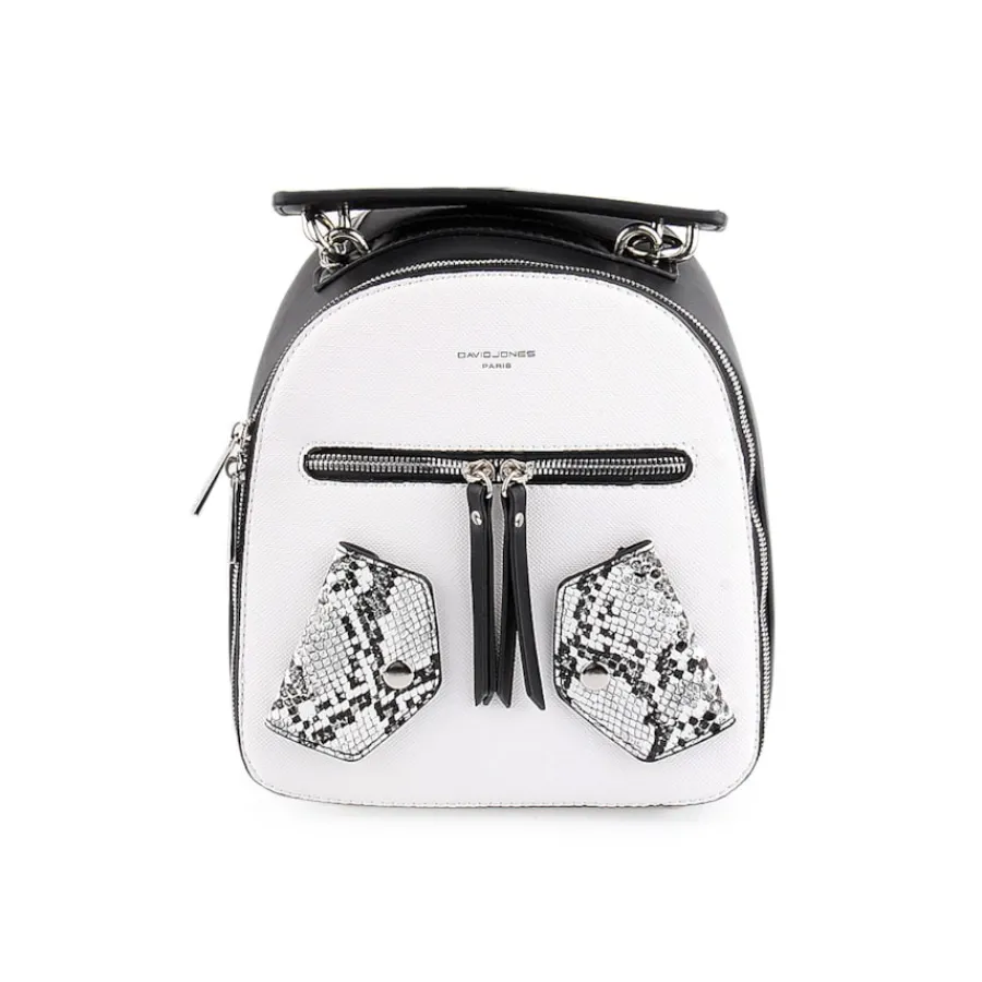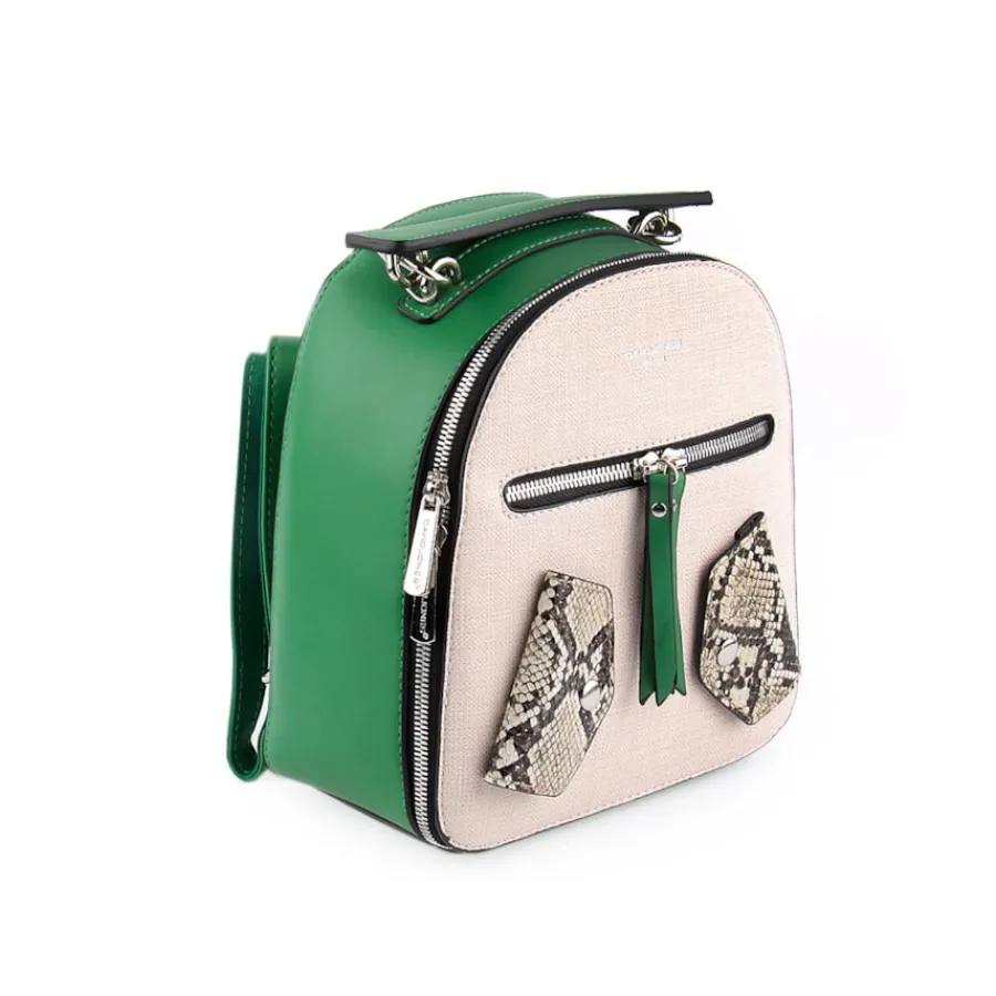 Mochila para senhora com pormenor de animal print. Disponível nas cores amarelo, azul, preto e verde.