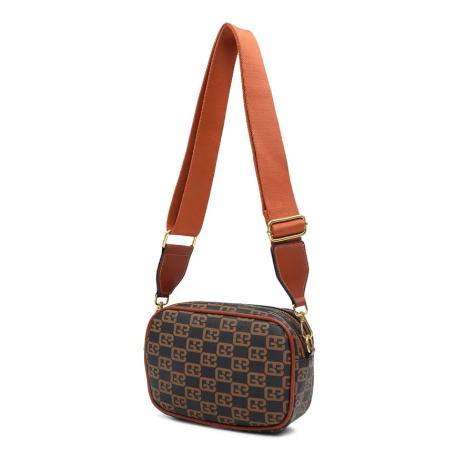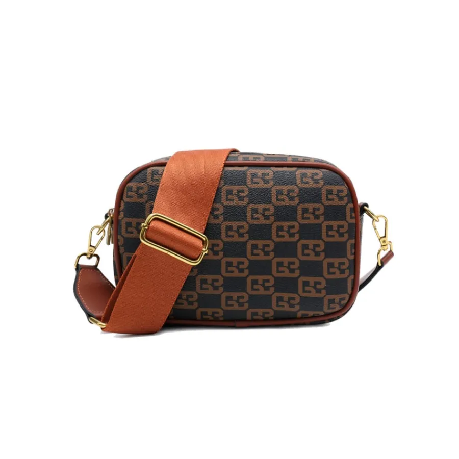 Mala senhora com alça à tiracolo e com padrão, disponivel nas cores Bege, Camel e em Preto.