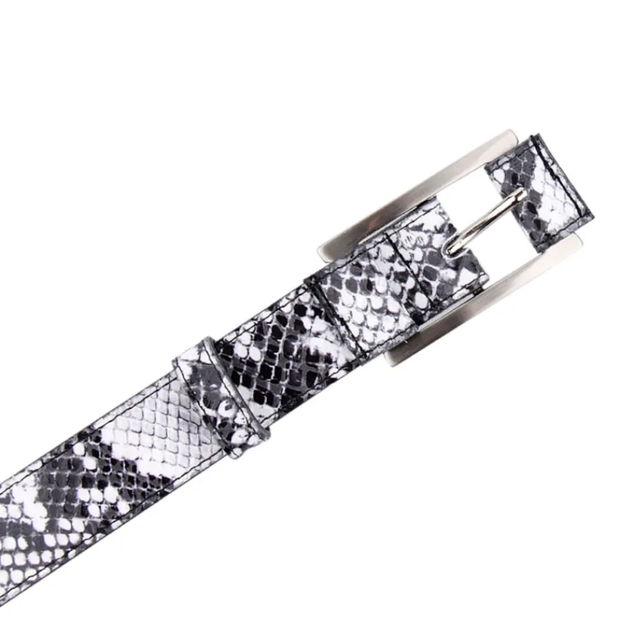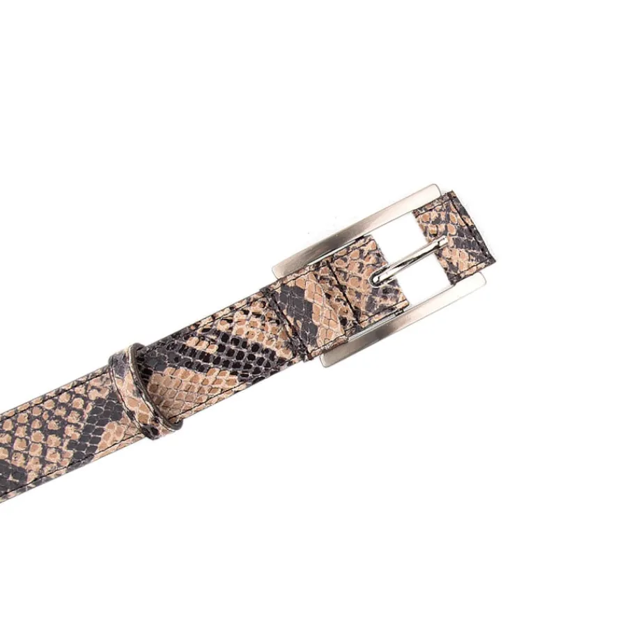 Cinto para senhora com padrão cobra. Disponível nas cores preto e beje.