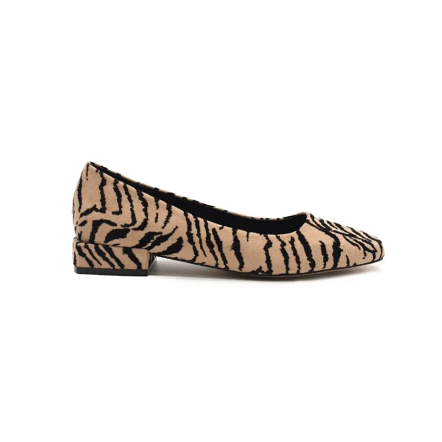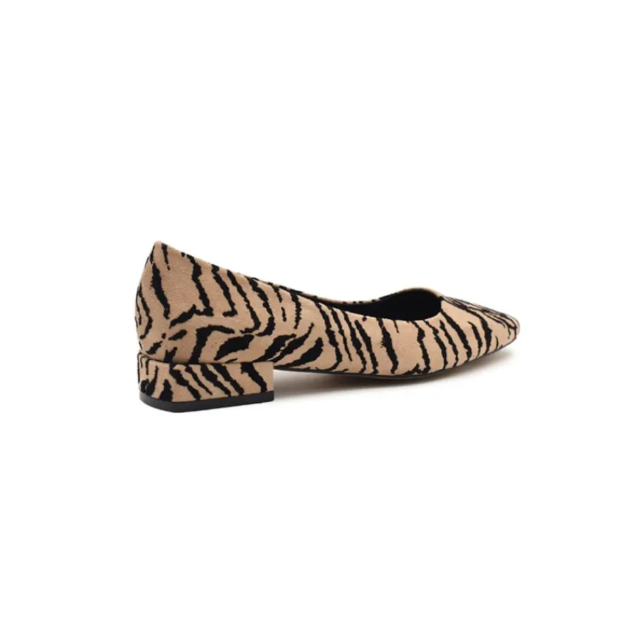 Destaque-se da multidão com esta sabrina com animal print! Seu salto baixo e material resistente farão com que você desfrute de um estilo moderno sem perder o conforto. Chame a atenção ao caminhar com estilo e conforto neste inverno.