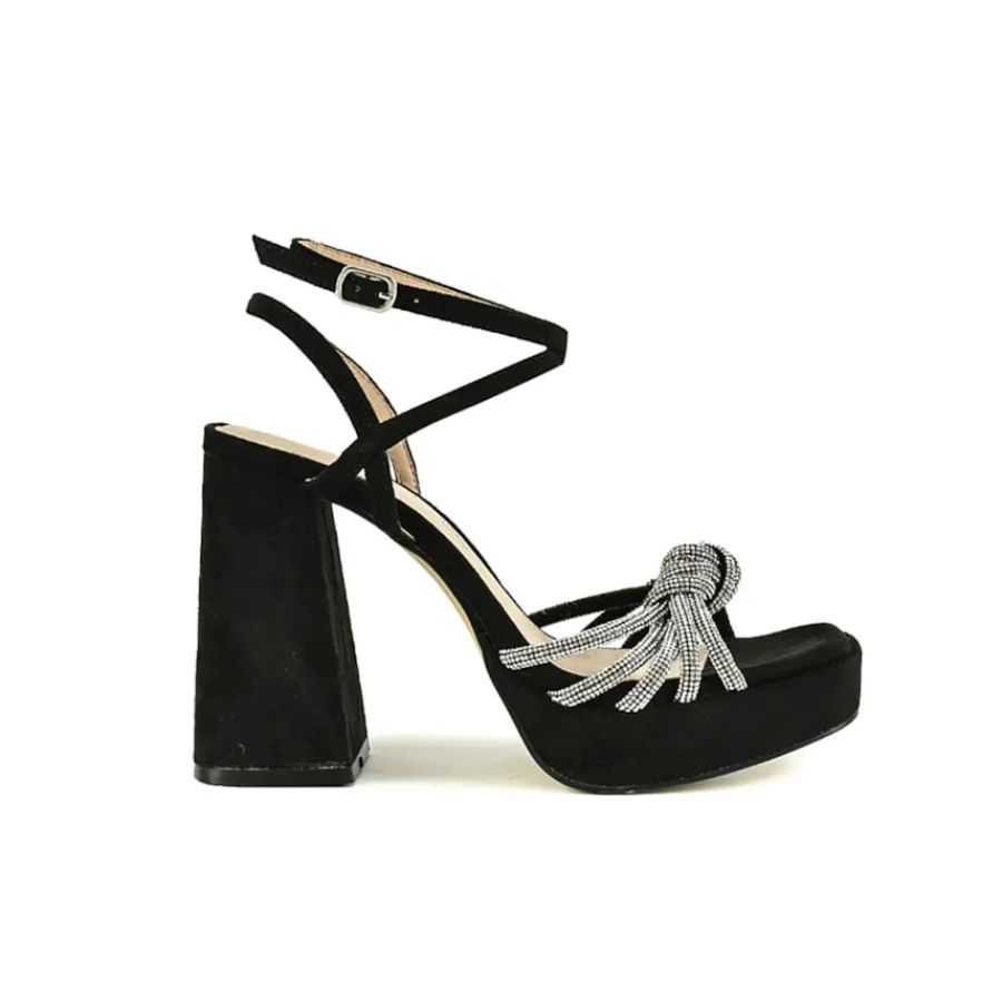 Estas sandálias de plataforma serão as suas favoritas neste verão, o seu desenho de tiras de strass com nó na parte superior irão dar mais personalidade aos seus looks. O seu fecho de fivela no tornozelo dá-lhe o suporte perfeito.Estas sandálias de senhora com strass, para além de muito versáteis, são super confortáveis devido ao salto largo e plataforma à frente. Asseguramos-lhe que este verão não os vai querer tirar. Palmilha de couroAltura do salto 11,5 cm aproximadamenteAltura