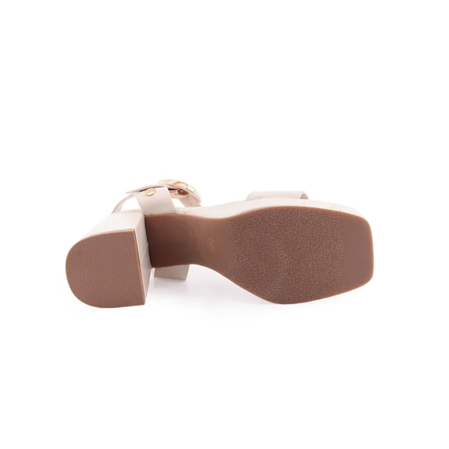 Sandália para senhora, com salto largo. Salto com 10cm de altura.