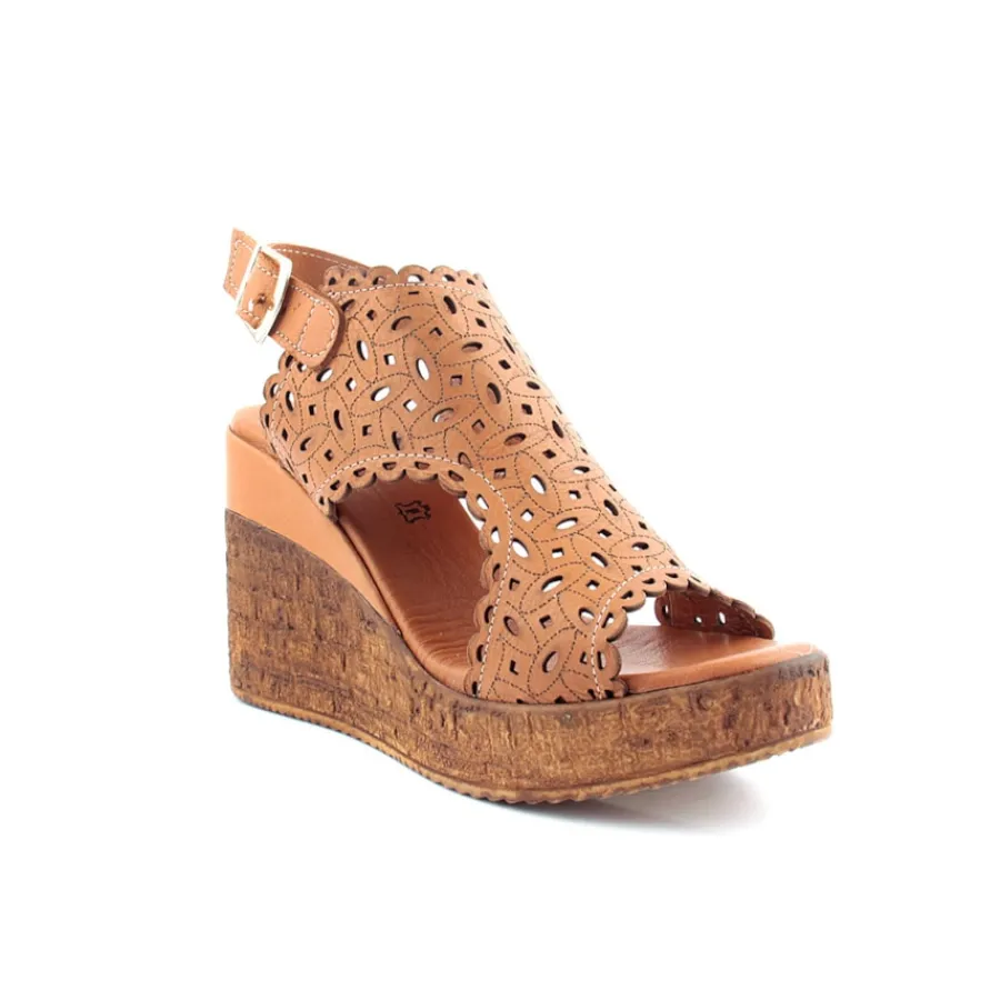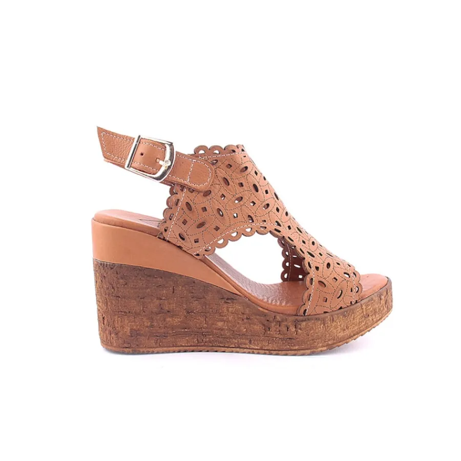 Sandália de cunha, em pele, para senhora. Salto com 10cm de altura.