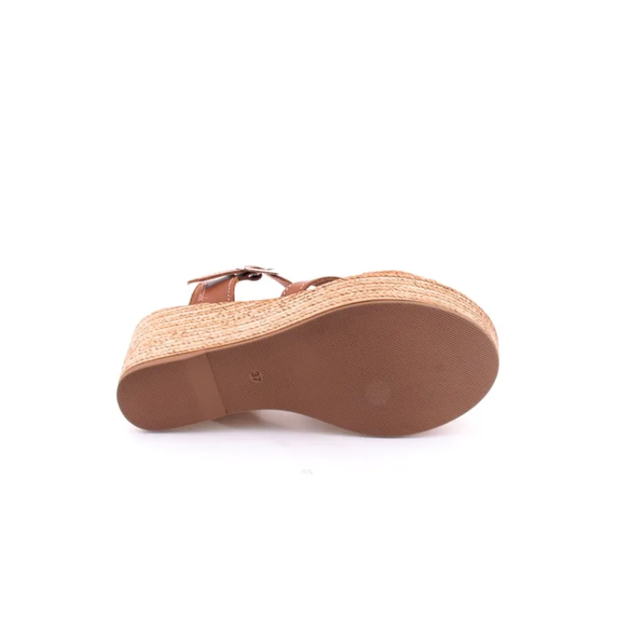 Sandália em pele com salto em cunha. Salto com 9cm de altura.