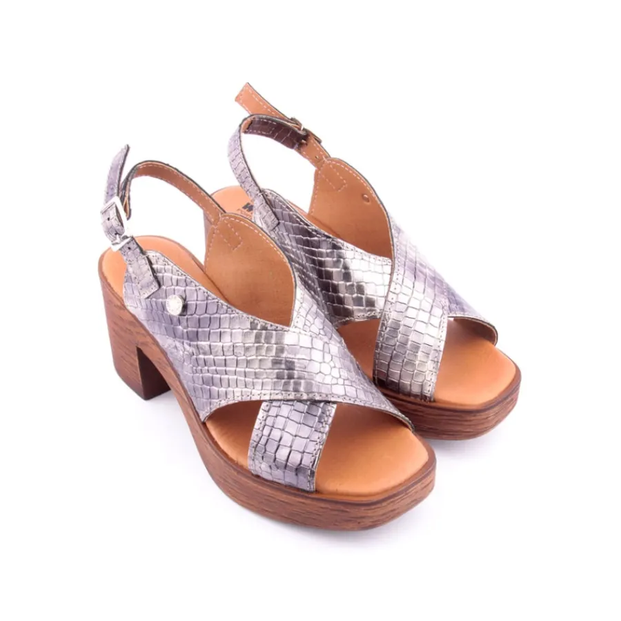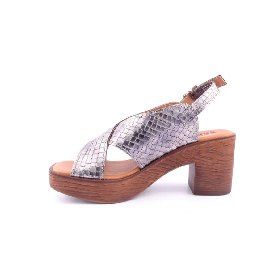 Sandália em pele para senhora. Salto com 8cm de altura.