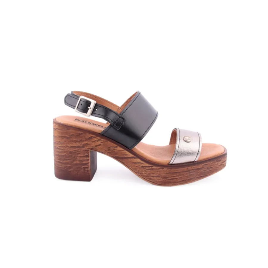 Sandália em pele para senhora. Salto com 8,5cm de altura.