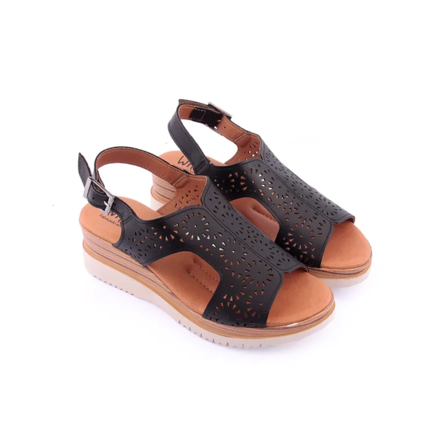 Sandália em pele para senhora. Salto com 6cm de altura.