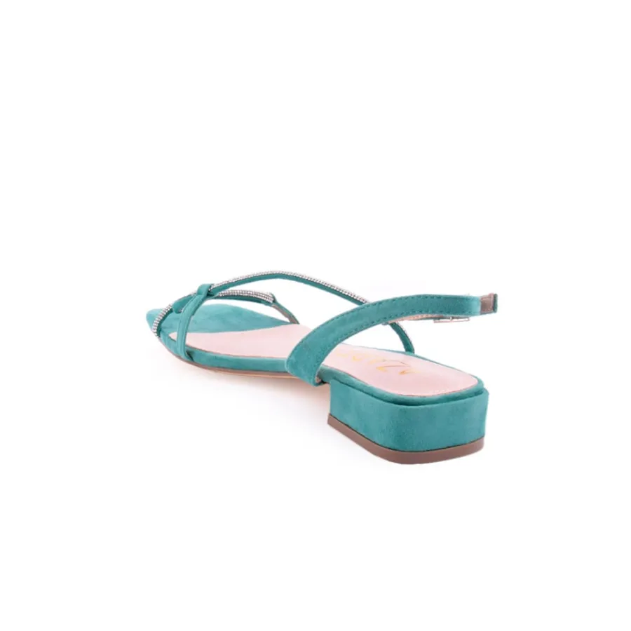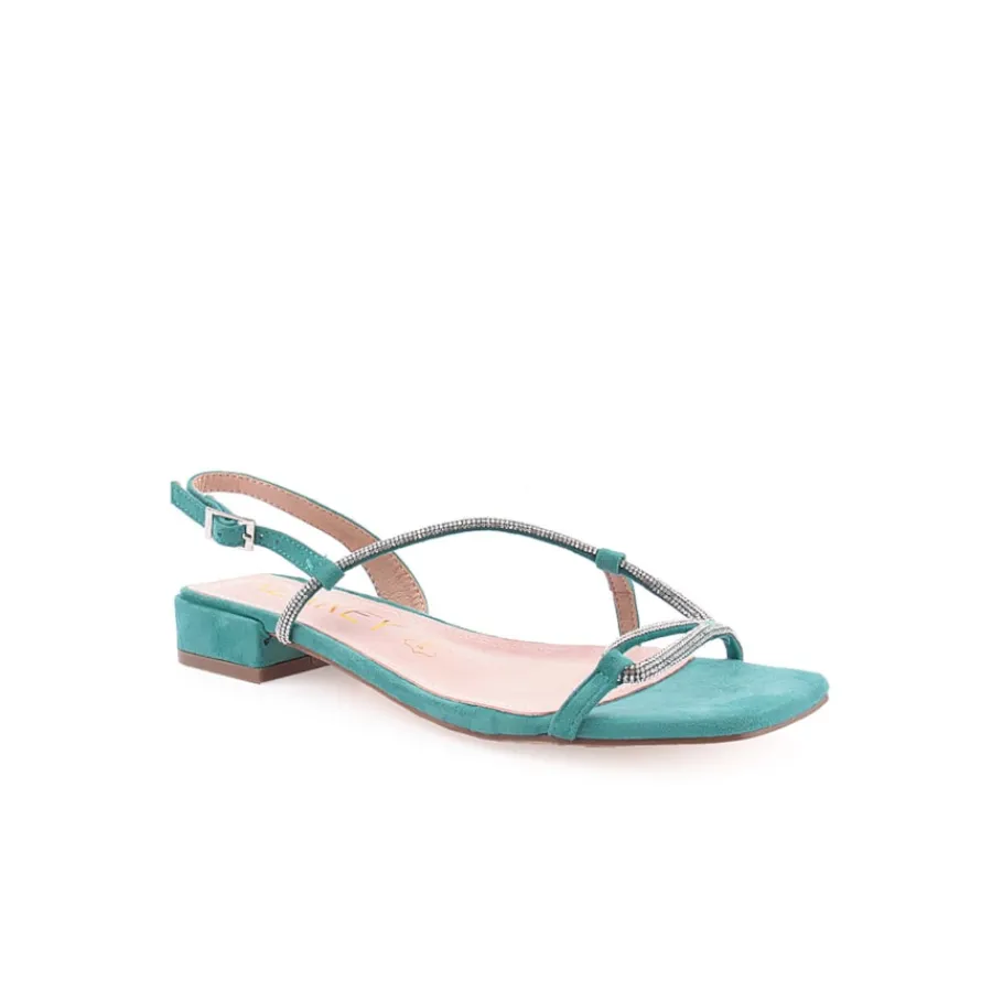 Sandália flat com strass. Estas sandálias de salto baixo são perfeitas para os dias de verão, o seu adorno de tiras de strass vai dar-lhe um estilo muito marcante.São o complemento ideal para que os seus pés fiquem cómodos e frescos durante todo o dia.