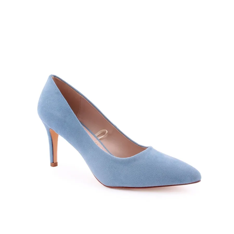 Sapato alto em camurça sintética. Salto com 8cm de altura.