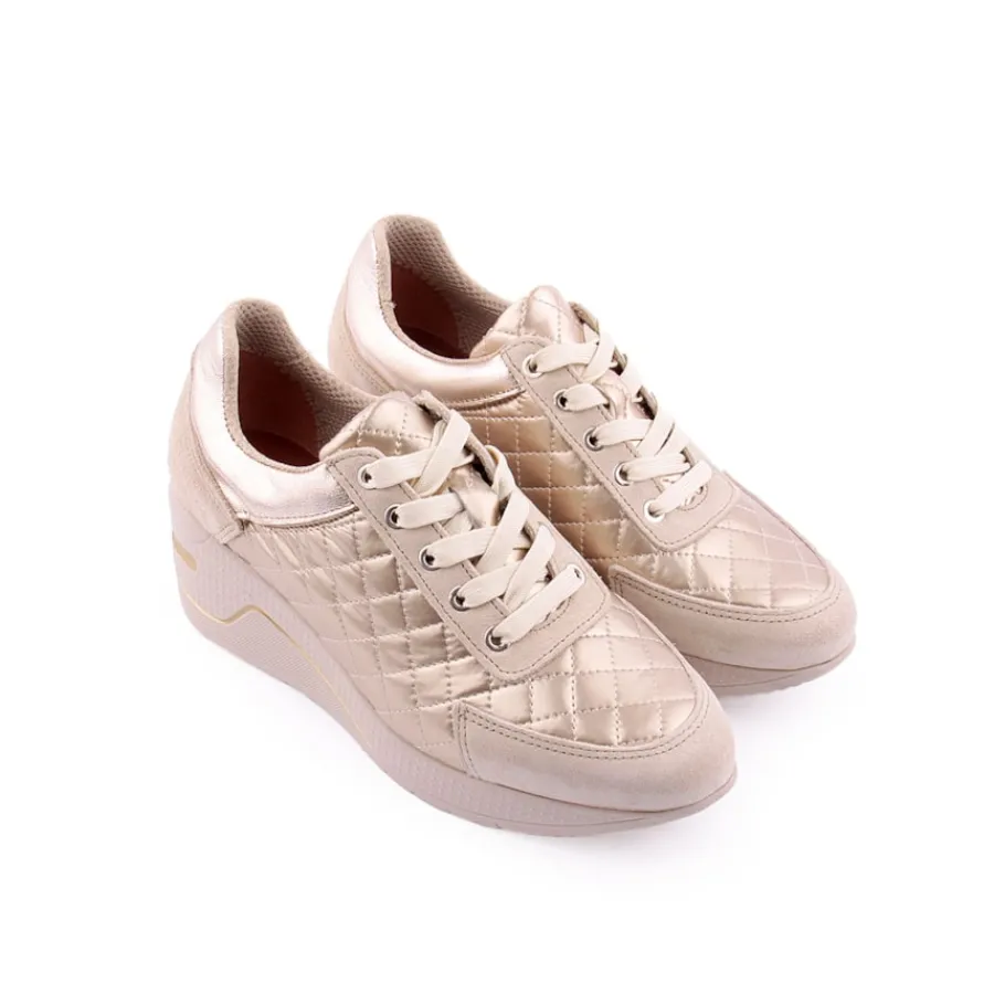 Sapato desportivo com salto em cunha, em pele para senhora.