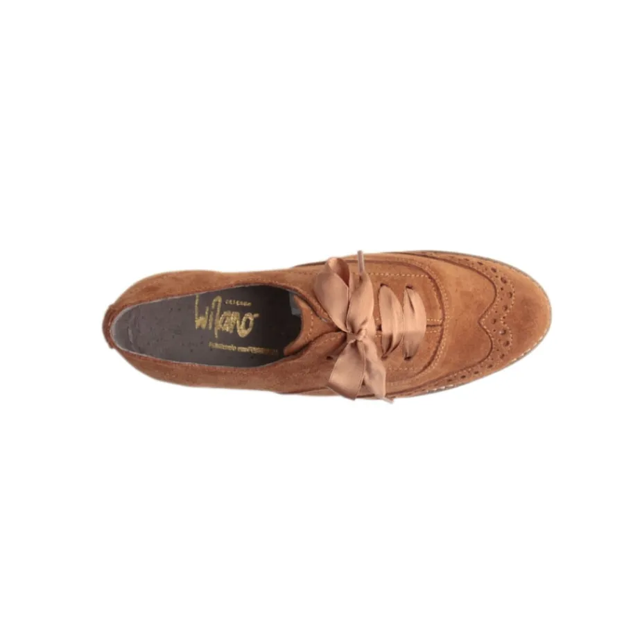 Sapato em pele para senhora com atacadores em fita. Disponível nas cores preto e camel.