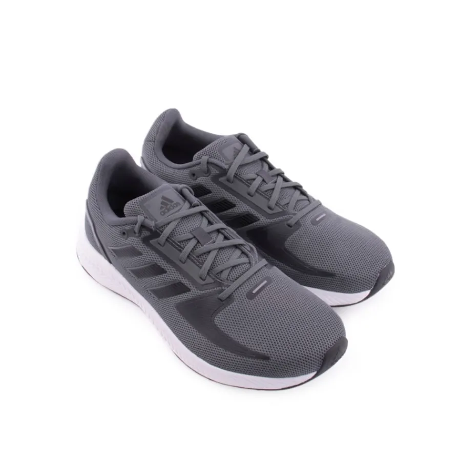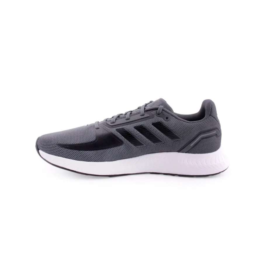 Ténis de iniciação adidas Runfalcon 2.0 projetados em cinza com malha respirável sem costuras graças aos seus reforços sintéticos. São confortáveis, leves e oferecem boa aderência graças à sua sola de borracha.