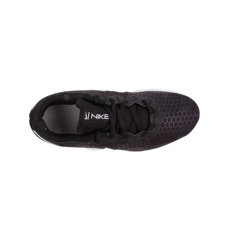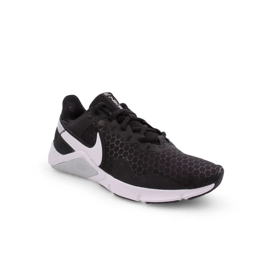 Ténis de fitness femininos Nike Legend Essential 2 em preto. A parte superior em malha respirável é forrada nas laterais e nas costas para maior durabilidade e respirabilidade. A sola plana oferece maior estabilidade durante os levantamentos e agachamentos, enquanto a borracha que envolve a área externa aumenta o suporte. A sola ranhurada permite maior flexibilidade e excelente tração em qualquer superfície do ginásio.