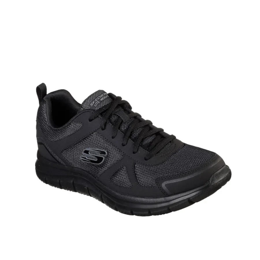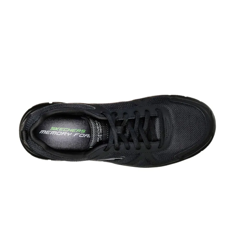 Mantém o conforto e o estilo atlético nas tuas sessões de treino com o sapato Skechers Track. Este modelo de sapatilha com atacadores desportivo apresenta uma parte superior em pele suave, material sintético e tecido de rede com uma palmilha almofadada viscoelástica.