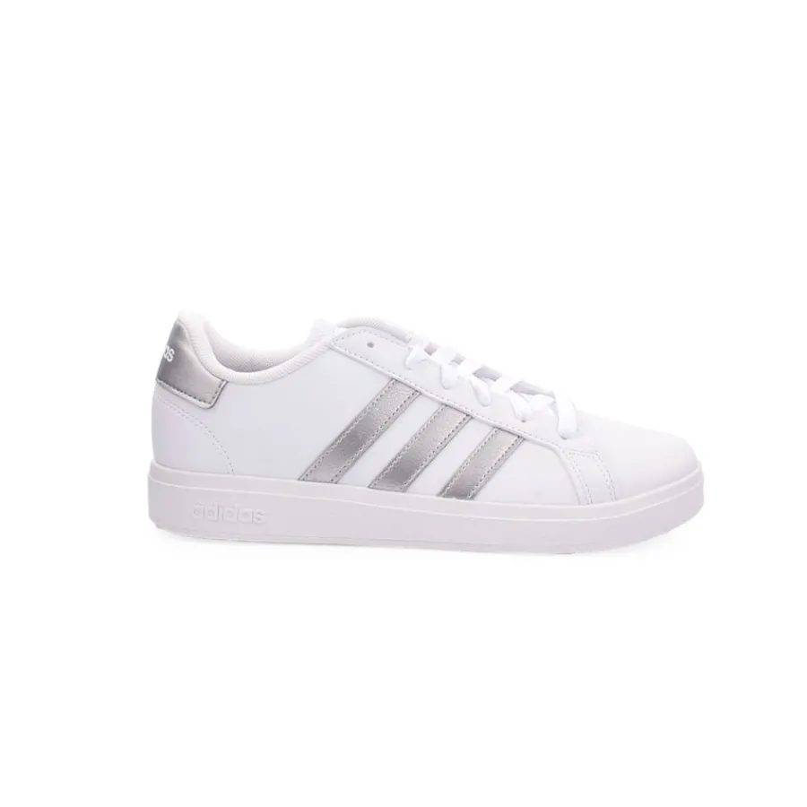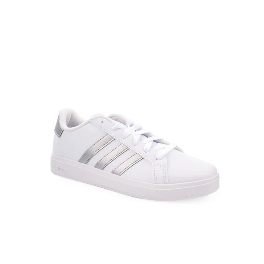 As sapatilhas Adidas Grand Court 2.0 infantil apresentam uma parte superior em couro sintético macio e resistente, que é resistente a todos os tipos de jogos, e tem uma sola de borracha flexível que protege os pés em crescimento. A parte superior contém pelo menos 50% de materiais reciclados. O seu objetivo é fornecer mais uma solução para ajudar a eliminar os resíduos plásticos.