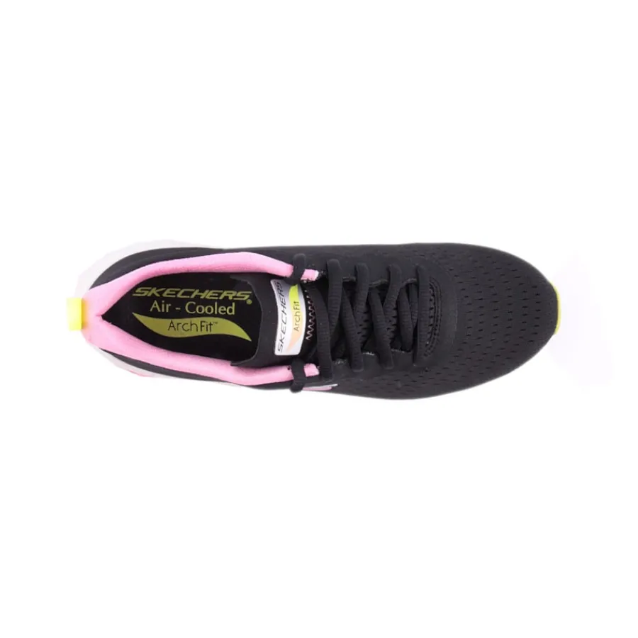 Caminha durante quilómetros com conforto sustentável e fresco usando Skechers Arch Fit® – Infinity Cool. Estes ténis com atacadores apresentam uma parte superior em tecido de rede com uma palmilha Arch Fit® amovível.
