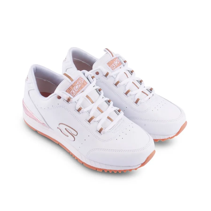 Os SKECHERS GOLDEN GURL combinam com diversão vintage e estilo desportivo. Palmilha memory foam refrigerada a ar. Costura e acentos de sobreposição.