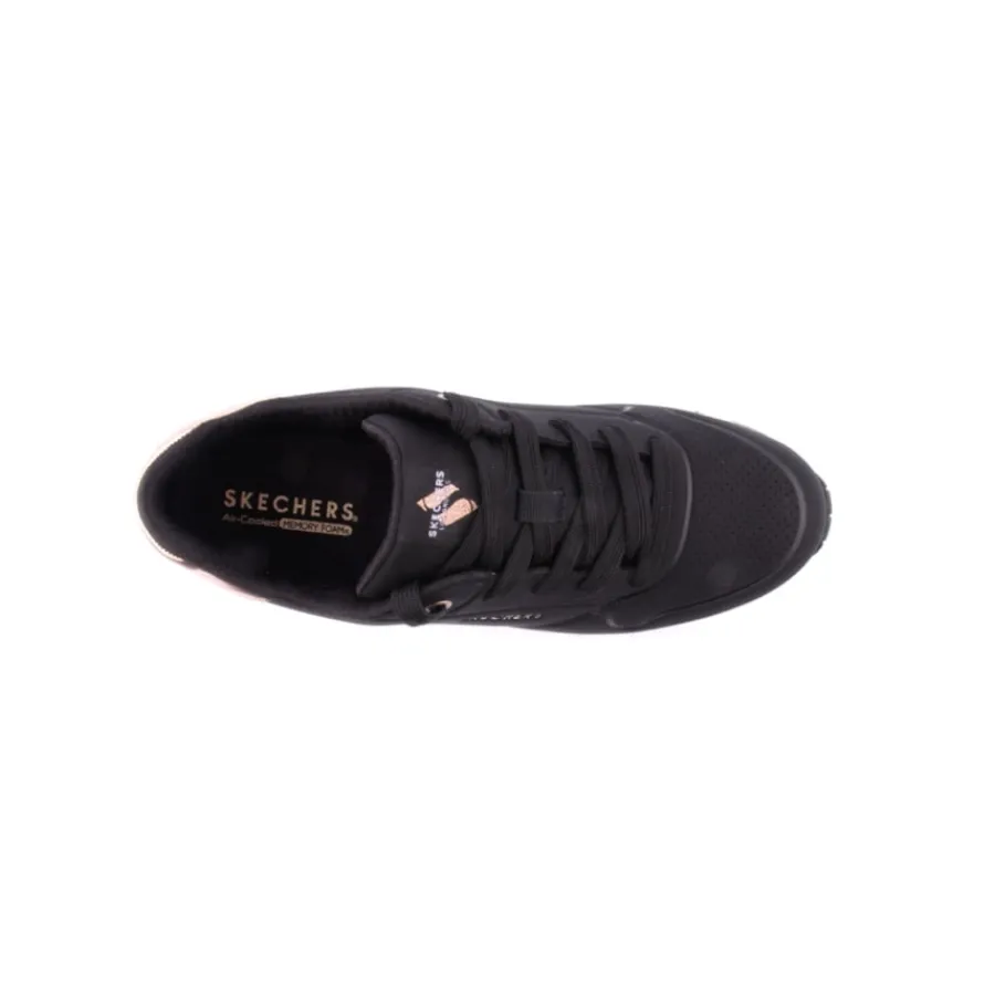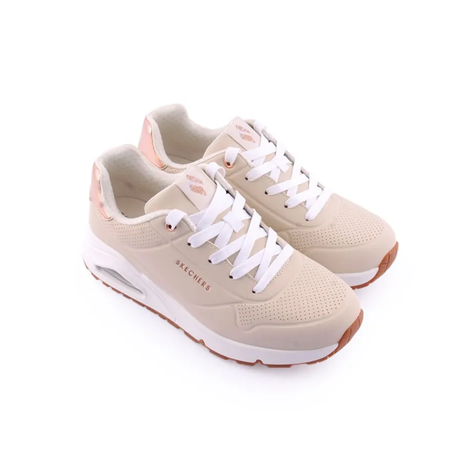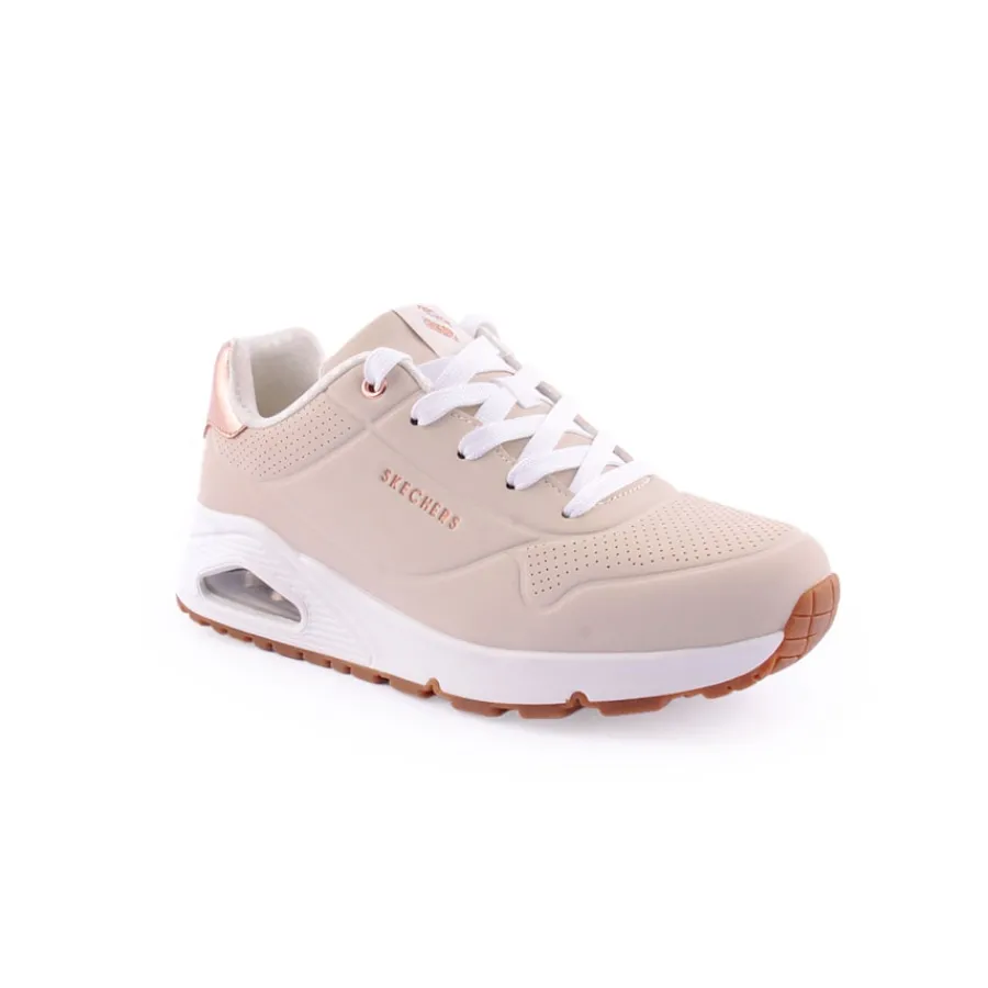 Destaca-te no conforto almofadado das sapatilhas Skechers Street™ Uno Gen1 – Shimmer Away. Estas sapatilhas modernas com atacadores têm parte superior em material sintético duraleather e acabamento metálico, palmilhas confortáveis Skechers Air-Cooled Memory Foam® e entressola visívelSkech-Air® com airbag.