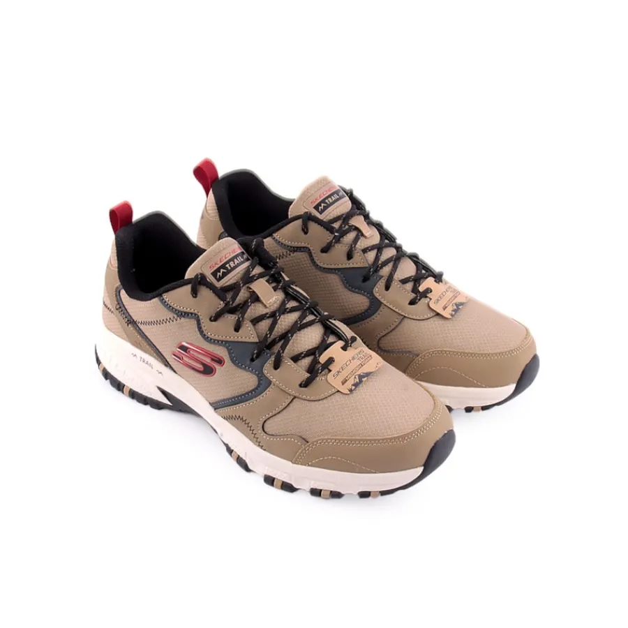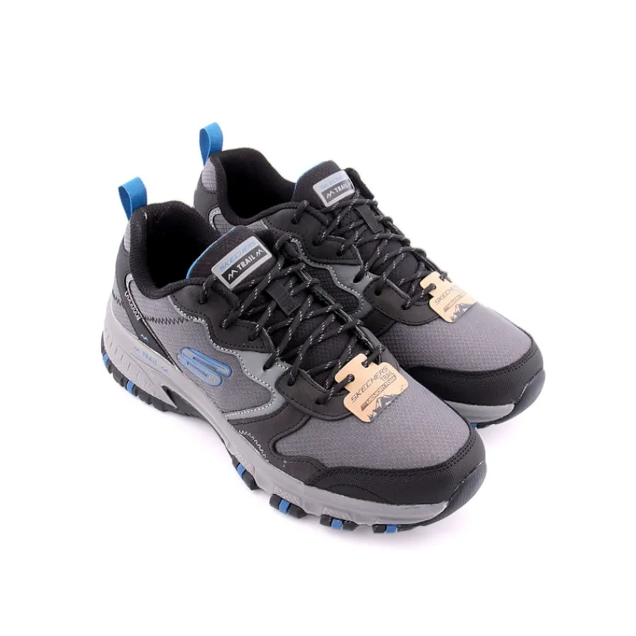 Prepara-te para explorar os trilhos com conforto garantido com o sapato Skechers Hillcrest – Vast Adventure. Estas sapatilhas desportivas para caminhadas em trilhos apresentam uma parte superior em pele e malha com atacadores à frente, palmilha almofadada Memory Foam e entressola com realce salpicado.